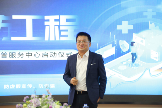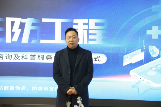 接下来北京广播电视台科教频道中心王勇主任发表了讲话,他强调了“三防工程”项目建设的必要性,北京广播电视台科教频道中心作为主流媒体更要高度重视传播手段的创新,用媒体的专业能力讲好中国人的健康故事和企业的诚信故事。