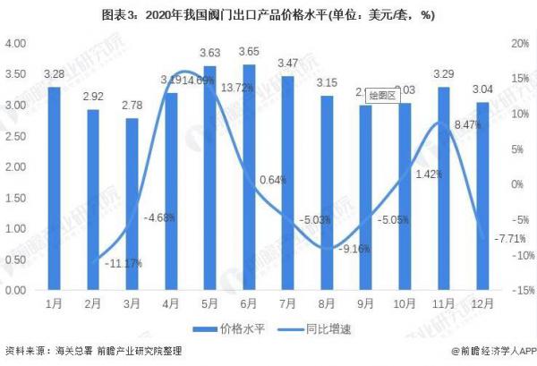 单从2020年的数据来看,由于我国阀门制造行业技术水平与美国、德国等西方发达国家相比较为落后,因此我国出口阀门以中低端阀门为主,相较于我国进口的中高端阀门类别,价格水平较低。2020年,我国阀门平均出口价格3.20美元/套。