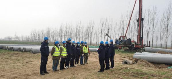 该工程具有工期短、准备工作多的特点。3月份复工以来,项目部及时委托第三方检测单位对前期试桩桩基进行承载力检测,加班加点出具分析数据、编制报告;反复与设计单位沟通、优化管桩长度;克服山东省疫情限制,督促管桩厂家优先排队预制生产,协调办理高速特殊通行证,确保预应力管桩顺利进场。