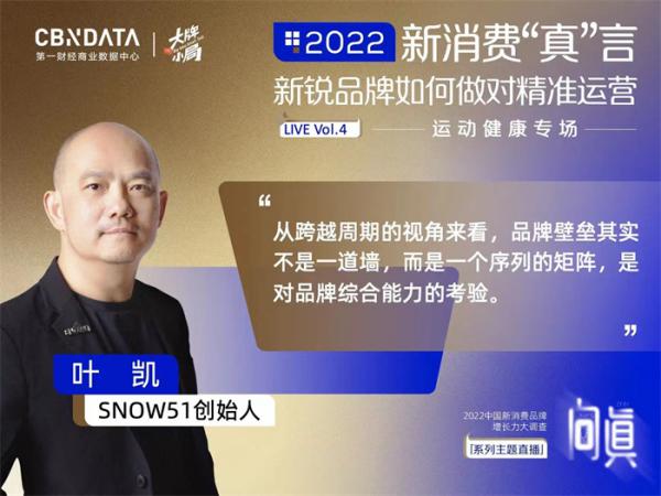 本期CBNData(第一财经商业数据中心)「2022新消费“真”言」系列主题直播对谈,聚焦运动健康新锐赛道。我们邀请到瞄准Z世代人群养生需求的功能性食品品牌BuffX创始人亢乐,以及为滑雪爱好者提供城市训练一站式服务的SNOW51创始人叶凯与应帆科技总裁王洋,从客群锁定、用户精细化运营、渠道创新等多角度,一起聊聊新锐运动健康品牌如何透过精准运营实现品牌的市场突围。