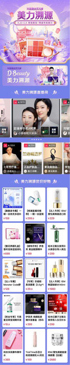 D-Beauty美力溯源项目也在各方面满足商家需求,比如调动多种直播间玩法、短视频玩法、榜单玩法、会场玩法,以及结合线上线下一体化,为新锐商家造声量出谋划策。