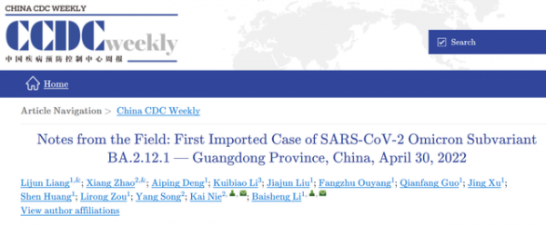 《中国疾病预防控制中心周报(英文)》5月16日报告了我国首例确诊感染新冠病毒“奥密克戎”亚型毒株“BA.2.12.1”的境外输入病例的具体情况。