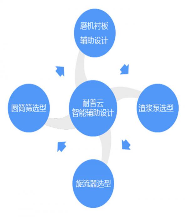 建立产品现场运行及性能表现大数据库、采用神经网络算法来建立并预测产品的运行状态模型。包含磨机衬板辅助设计,渣浆泵、旋流器及圆筒筛选型设计。