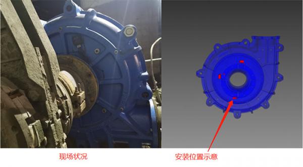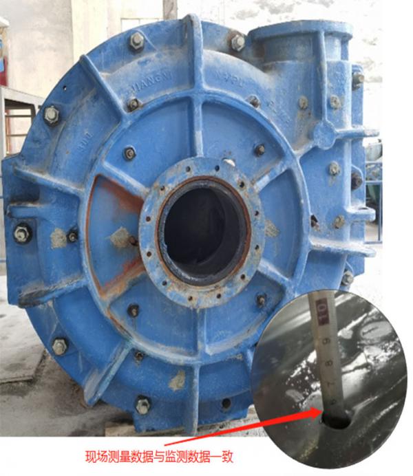 2021年12月9日在某选厂350NZJAH渣浆泵前护板上安装了智能在线磨损监测系统,运行正常。