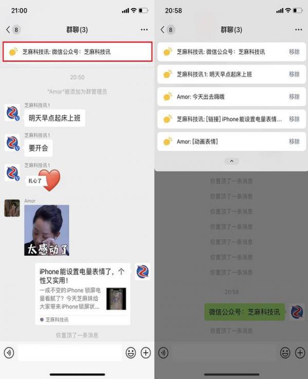 前几天,微信官方发布了iOS微信8.0.22正式版,新增了邀请进群申请、状态同时插入表情和文字、订阅号消息浮窗等新功能,芝麻妹也对本次更新的内容进行了总结,除了之前总结的新变化,芝麻妹还发现了一个新的隐藏功能,就是群聊消息置顶。