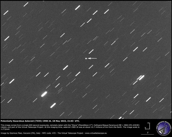 根据美国国家航空航天局(NASA)近地天体研究中心介绍,这颗名为1989 JA的小行星直径约1.77千米。