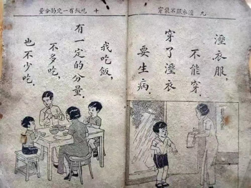 毒教材事件发酵后,很多人开始讨论,什么样的教材是好教材。其中提到最多的,是1932年出版的民国小学教材《开明国语课本》。该读本由著名教育家叶圣陶亲自编写,绘画大师丰子恺亲自插画,画风大概是这样的。