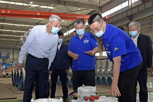 2022年6月6日,甘肃省省委书记、省人大常委会主任尹弘,省委常委、兰州市委书记朱天舒等省市领导一行到兰州高压阀门有限公司调研指导工作,公司副董事长、总经理陈文鑫,党委副书记、常务副总郝宏达等公司领导陪同调研。