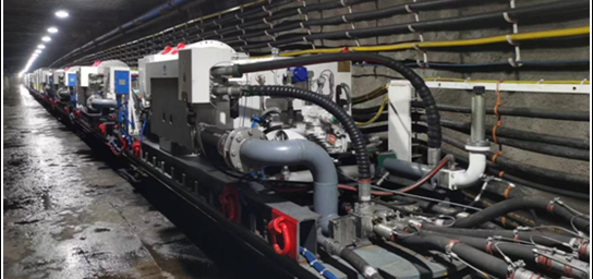“煤矿高效能大流量远距离智能配送水基动力系统成套装备”项目开发了多泵站并联集中式智能变频控制系统和大流量蓄能稳压装备及回液中继系统;发明了井下大流量乳化液泵冲击脉冲预测方法、乳化液智能配比及矫正系统;提出了用液实时轻量算法+用液超前预测模型的符合控制方案,实现了3500m以上的超远距离工作面稳压稳流智能配送。