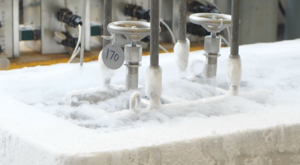 在沪东阀门的超低温试验区,一项针对船用超低温阀产品的深冷试验操作正在进行。记者看到,在零下196摄氏度的液氮环境下,工作人员将四只充满氦气的船用超低温阀投入其中,并在仪器上观察相应的数据变化。