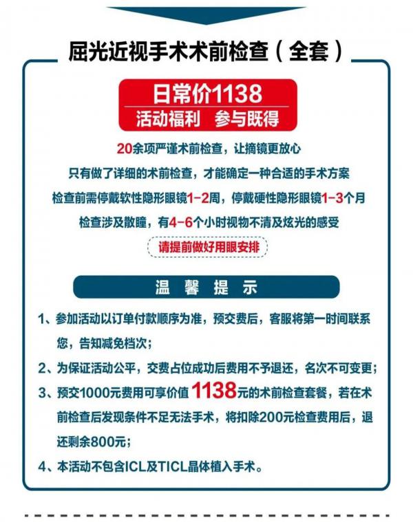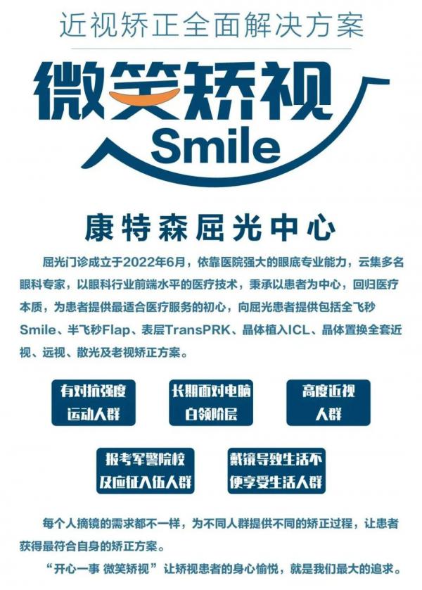 大家期盼的,昆明康特森眼科医院屈光手术中心早就替大家想到了。即日起推出重磅福利,康特森眼科医院7月开展:【微笑“夏“一站 屈光手术活动 】。到昆明康特森眼科医院屈光手术中心做飞秒类激光手术可享受多重优惠福利(具体活动形式,请见下方海报)。