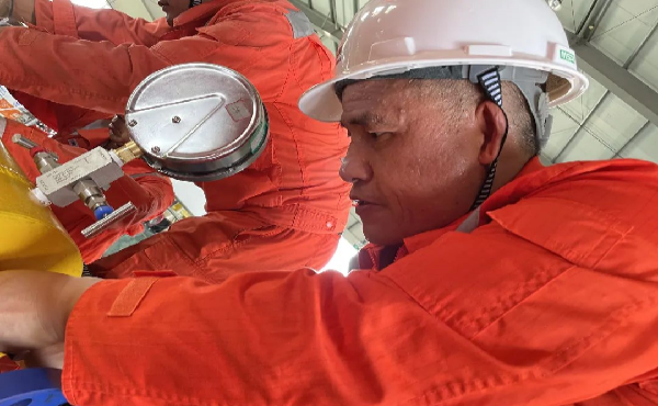 为了圆满完成此次带压试验工作,川气东送嘉兴维抢修队全体参试人员克服工房内40多度的高温,不怕困难,无惧失败,汗水湿透了工作服,湿了又干,干了又湿。他们面对股股热浪,逆行而上,凭着一颗单纯的、热血的、激情的想要干事的决心。经过多次重复试验和改进,终于使封堵压力达到7MPa以上,远超项目立项时设定的6.3MPa压力。