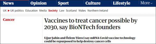 据报道,BioNTech现在有几种癌症疫苗处于临床试验阶段。图雷利表示,辉瑞和BioNTech成功研发出新冠疫苗,也推动了该公司在研发癌症疫苗方面的工作。