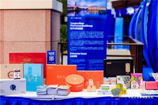 图为扬子江药业集团在中国企业家博鳌论坛现场展示的大健康产品