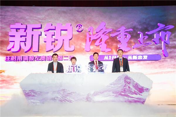 图为扬子江药业1类新药注射用磷酸左奥硝唑酯二钠上市发布会
