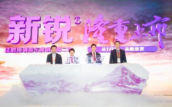 该照片为2021年10月,扬子江药业集团举办首个化学1类新药——新锐?注射用磷酸左奥硝唑脂二钠发布会。