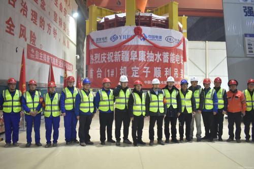 12月15日12时30分,新疆阜康抽水蓄能电站首台(1#)机组定子吊装工作圆满完成,标志着阜康抽蓄电站1#机组总装工作拉开序幕,为首台机组发电目标奠定坚实基础。