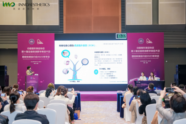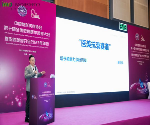 在色素管理和抗衰均占据头部位置的英诺皮肤世家,针对用户的痛点,提出了抗光老化方案。在本次第十届全国微创医学美容大会中,英诺皮肤世家大中华区CSO赵波博士为我们带来了课题分享“御光重塑,聚‘胶’新生”。