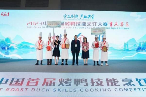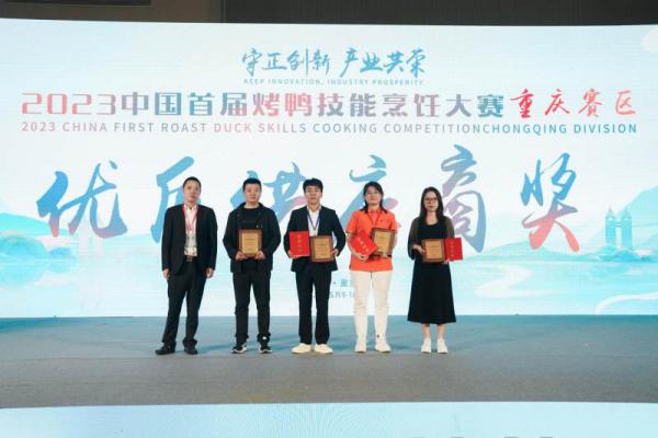 2023中国首届烤鸭技能烹饪大赛(重庆赛区)由中国烹饪协会主办,中国烹饪协会烤鸭专业委员会承办,得到中国全聚德(集团)股份有限公司、北京便宜坊烤鸭集团有限公司、北京大董烤鸭店有限责任公司、重庆市烹饪协会、北京汉森国际展览有限公司、重庆德香苑企业管理有限公司、陕西富强宏图牧业有限公司、山东鲁工厨房设备有限公司、安徽立全宏达食品有限责任公司、重庆守柴炉餐饮管理有限公司等企业大力支持。本届大赛参与的品牌规模、参赛选手水平得到专家评委的广泛认可;大赛成为连接烤鸭产业上下游,促进产业交流的一次盛会。