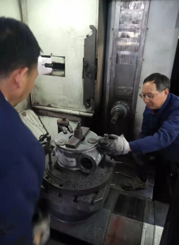 在金工车间主任凌斌的带领下,程建军和鲍卫东开动脑筋,挖掘潜力,自制工装、编制工艺(加工中心编程),5月中旬成功在加工中心上完成了WQ500蜗轮箱箱体的机加工,工艺改进后,加工工效提高了3倍,加工质量稳定可靠,且减轻了钻削工序压力,缩短了产品加工周期,提升了企业的竞争力。