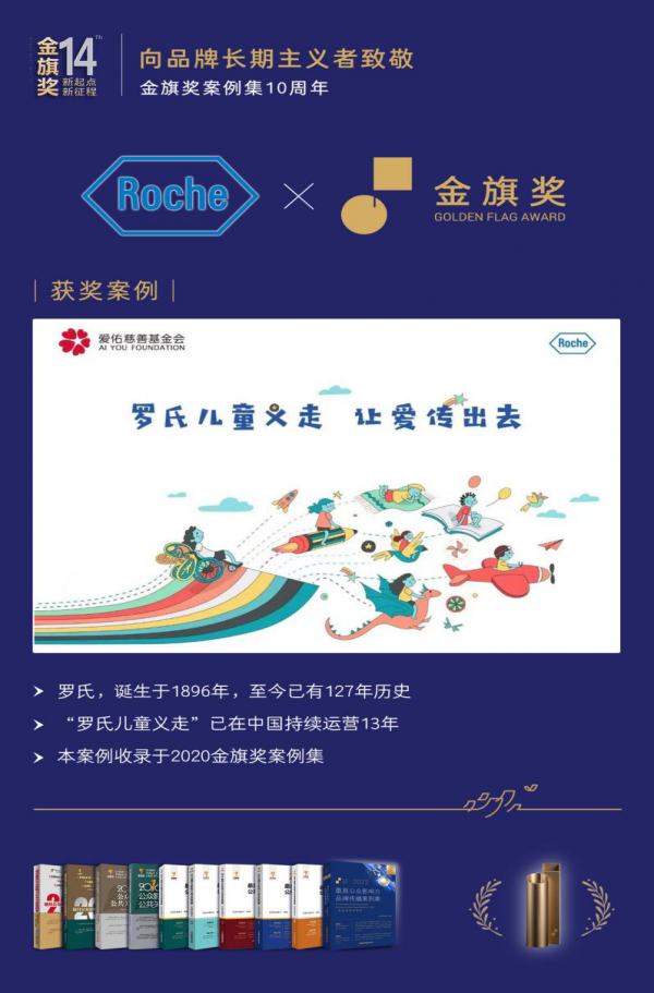 “罗氏儿童义走”是由罗氏制药发起的企业社会责任项目,每年6月在全球同步开展。2010年项目进入中国,已在中国持续运营13年。以员工义走、公司捐助及社会公募形式援助弱势儿童群体,并呼吁社会力量的关注。该项目已携手多方公益伙伴,持续为各类弱势儿童群体提供捐赠救助。“罗氏儿童义走”项目已在中国累计捐赠善款800余万元,救助与关爱患儿逾3400人次。该案例获得2020金旗奖全场大奖,收录于2020金旗奖案例集。