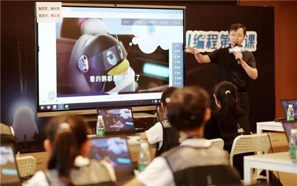 中关村第三小学课程部副主任郝石佩带乡村孩子进行“AI编程第一课”
