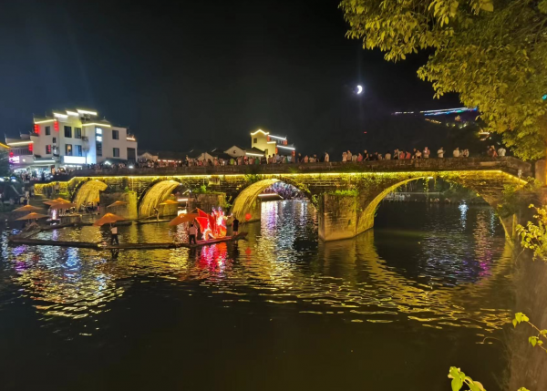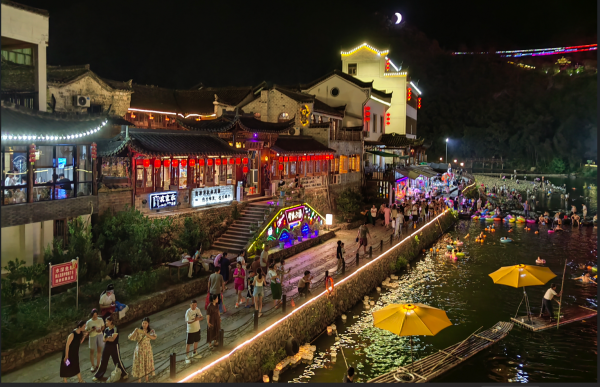 酒足饭饱后,团队前往旅程第六站:上河村。上河村正在上映“不夜上河”· 梦幻水灯市集活动,汇聚于水面上的每一盏水灯,都像是星星落入凡间,承载了无数的心愿和期待!市集上,各式各样的文创产品琳琅满目,每一件都蕴含着匠人的心血。大家纷纷被这浪漫的景象所陶醉。