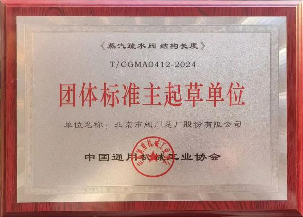 近日,北京市阀门总厂股份有限公司(以下简称“北阀总厂”)再传捷报,在中国通用机械工业协会2024年第八届理事会第四次会议上,公司荣获《蒸汽疏水阀 结构长度》团体标准主起草单位的荣誉牌匾。这标志着北阀总厂在行业技术标准制定中再次取得重要突破,为推动我国机械工业标准化发展作出了重要贡献。
