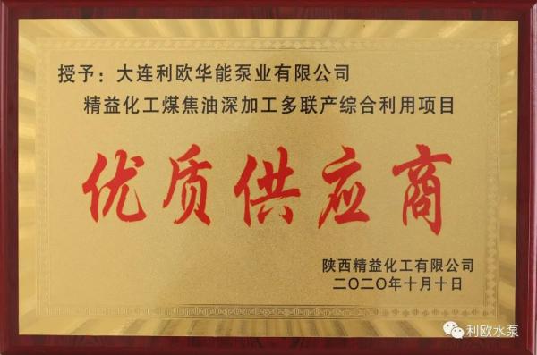 2020年,利欧泵业在陕西精益化工项目全面投产表彰大会上荣获“优质供应商”奖,这是对利欧泵业产品和服务的高度认可。