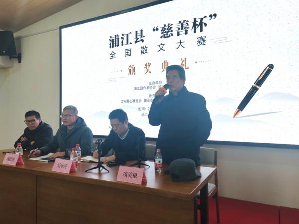 2024年12月29日,公司终身名誉蕫事长项美根先生受邀参加浦江县“慈善杯”全国散文大赛颁奖典礼。