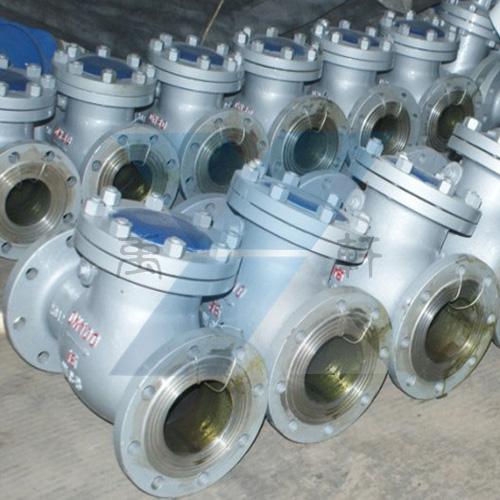 ●?H41H升降式止回阀:其阀瓣沿着阀体的垂直中心线滑动。阀体形状与截止阀相似,阀瓣与阀盖之间有导向套筒,确保阀瓣在介质顺流时靠推力开启,介质停流时靠自重关闭。这种设计使得升降式止回阀必须水平安装。