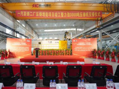 8月24日,长春一汽联合压铸有限公司(简称“一汽联铸”)二厂压铸增能项目竣工暨力劲3000吨/1600吨压铸机交接仪式在一汽联铸举行。一汽铸造有限公司(简称“一汽铸造”)董事长孙锋、总经理胡金豹,一汽联铸董事长洪绅福、总 [