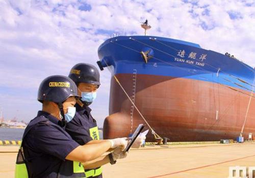9月1日,在大连海关所属旅顺海关的监管下,大连中远海运川崎船舶工程有限公司制造的30万吨级油轮“远鲲洋”号(YUAN KUN YANG)顺利交付出口,这是该公司今年交付的第十艘出口船舶。大连海关关员监管油轮交付出口(央广 [