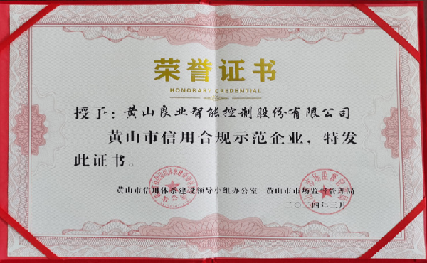 黄山良业智能控制股份有限公司获黄山市信用合规企业荣