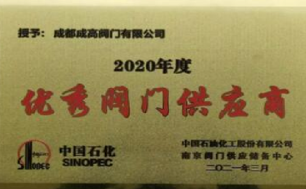 成高阀门荣获中石化2020年度“优秀阀门供应商”